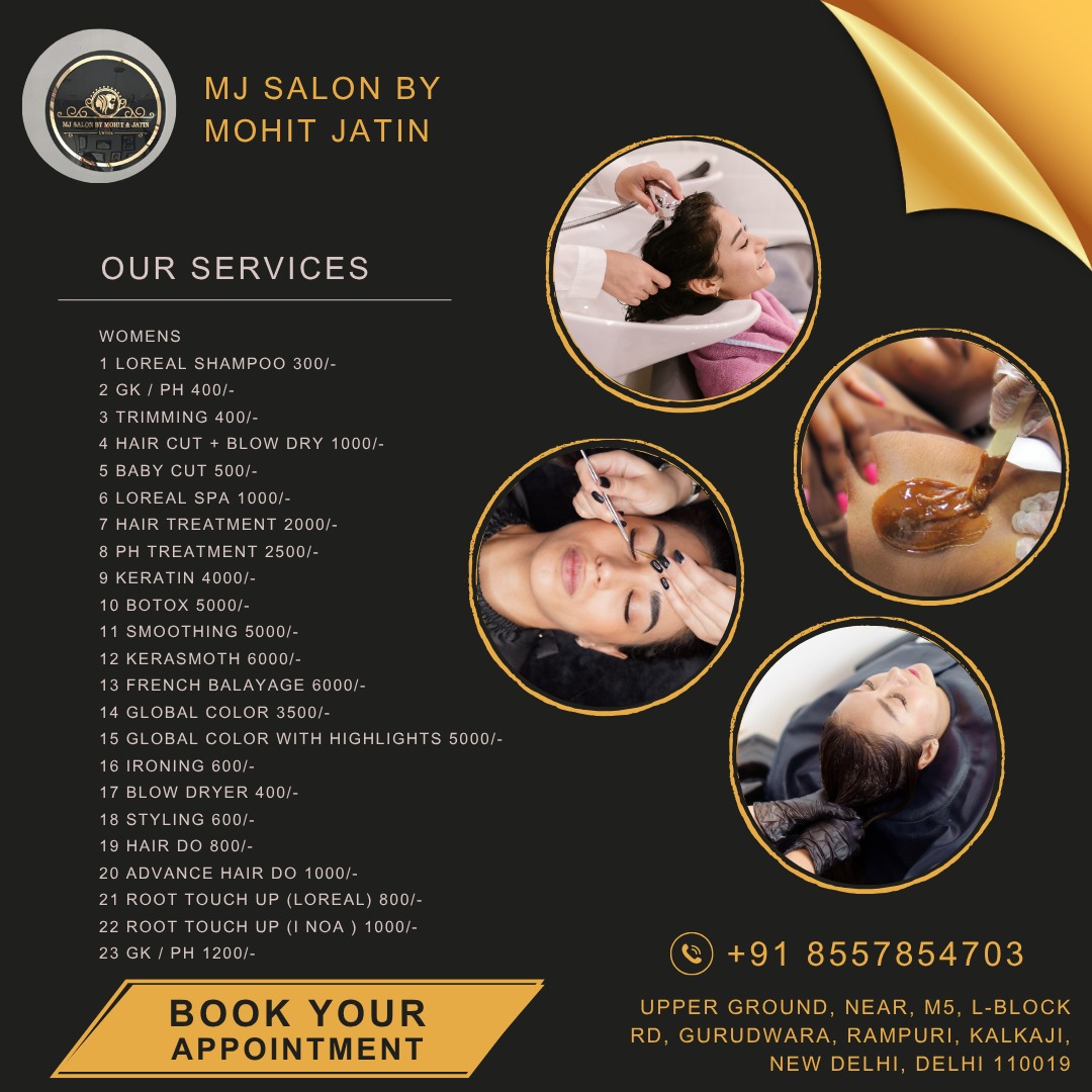 MJ Salon by Mohit & Jatin is a premier unisex salon located in Kalka Ji, offering top-notch beauty, hair, nails, and makeup services. Known for its professional and skilled team, the salon specializes in bridal makeup, hairstyling, keratin treatments, hair coloring, and nail extensions. With a commitment to delivering exceptional customer experiences, the salon combines high-quality products with personalized care. MJ Salon also provides home salon services, ensuring convenience for busy clients. Whether it’s a wedding, party, or regular grooming, MJ Salon is your go-to destination for all beauty and styling needs. Visit us for a flawless transformation. Book your Slot Today
